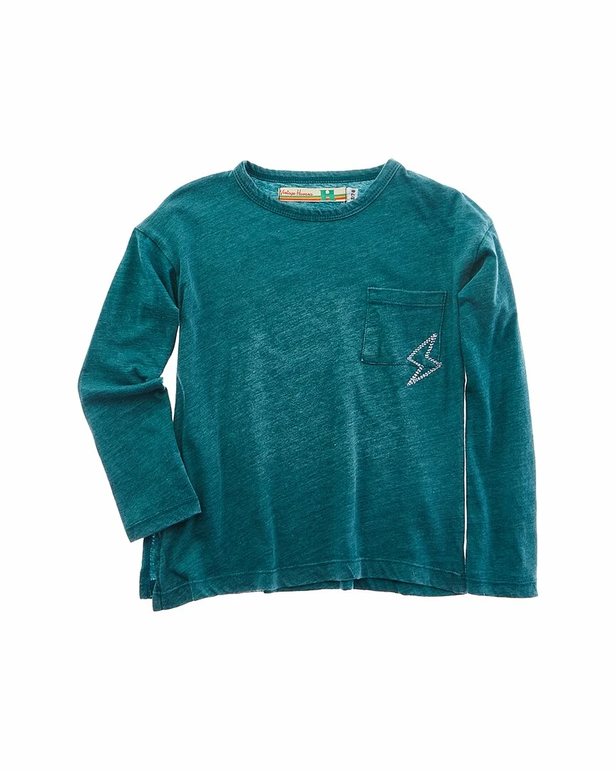 - Burnout Jersey Side Tie Top In Crystal Teal With Chest Pocket, Embroidered Accent, And Asymmetrical Split Hem