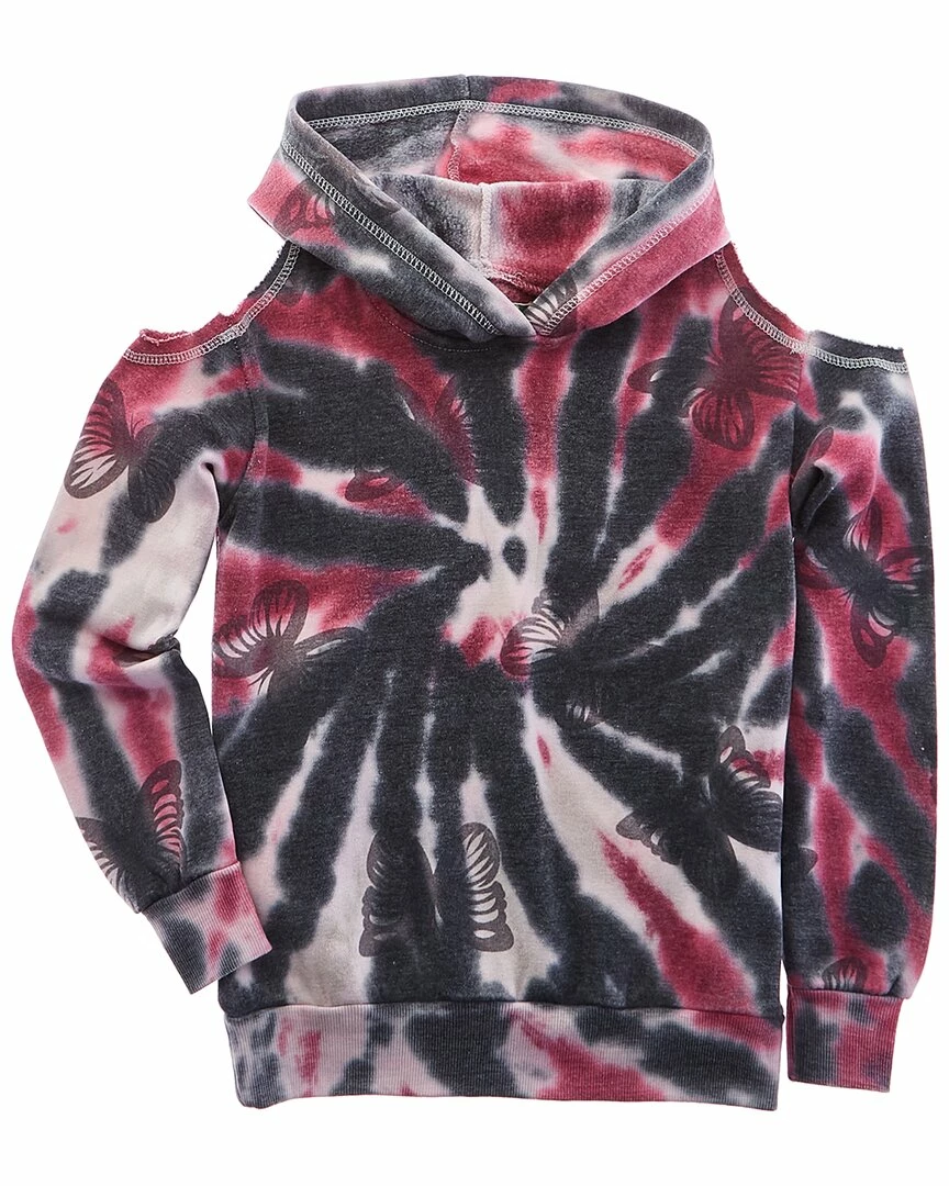 - Cold-Shoulder Top In Fire Wings With Raw Edge Cold-Shoulder Sleeves, And Attached Hood