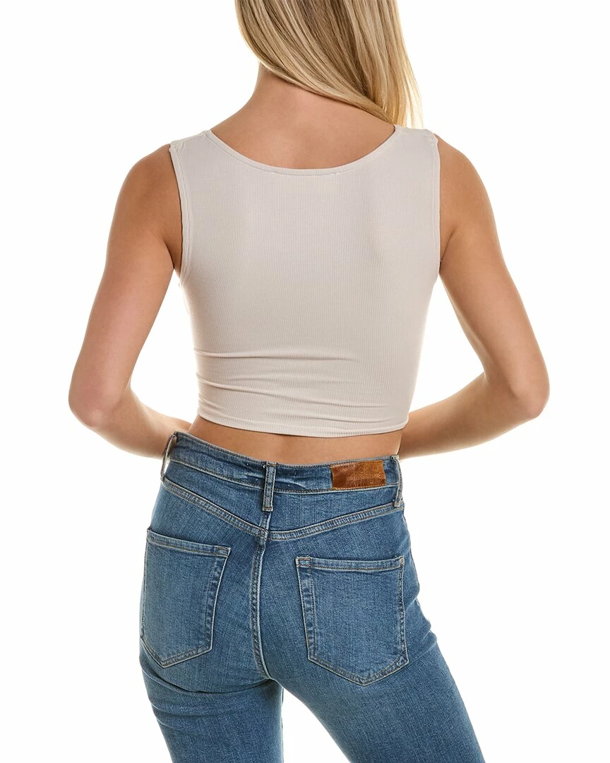 - Double Ring Tank In Cream With Rib Design And Cutout At Front