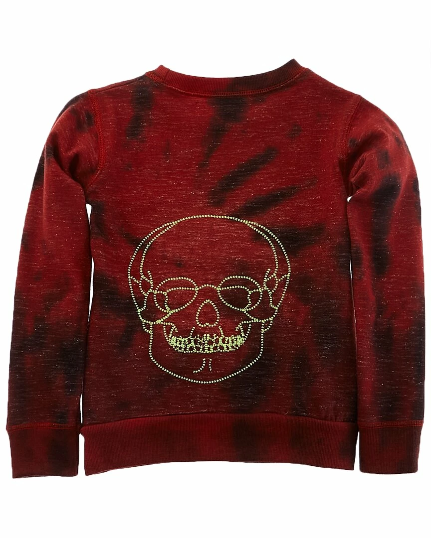 - French Terry Sweatshirt In Spicy Tie-Dye With Crewneck, Embroidered Skull At Back And Ribbed Trim