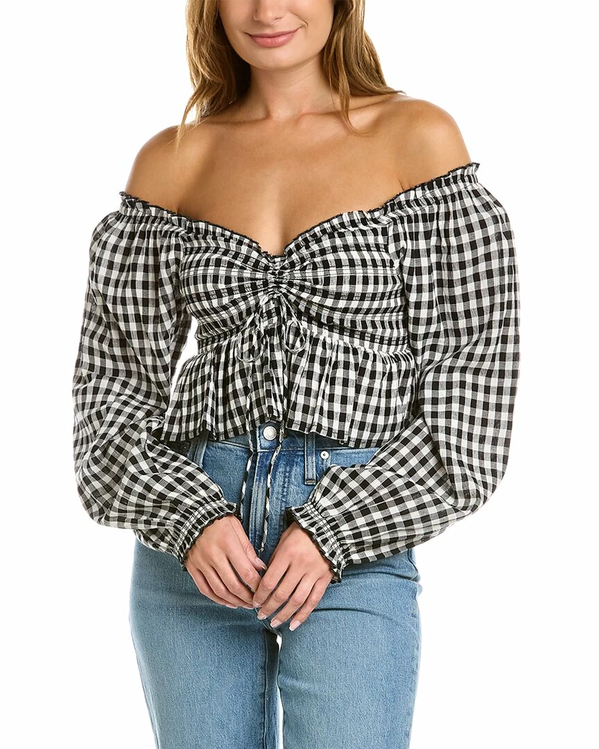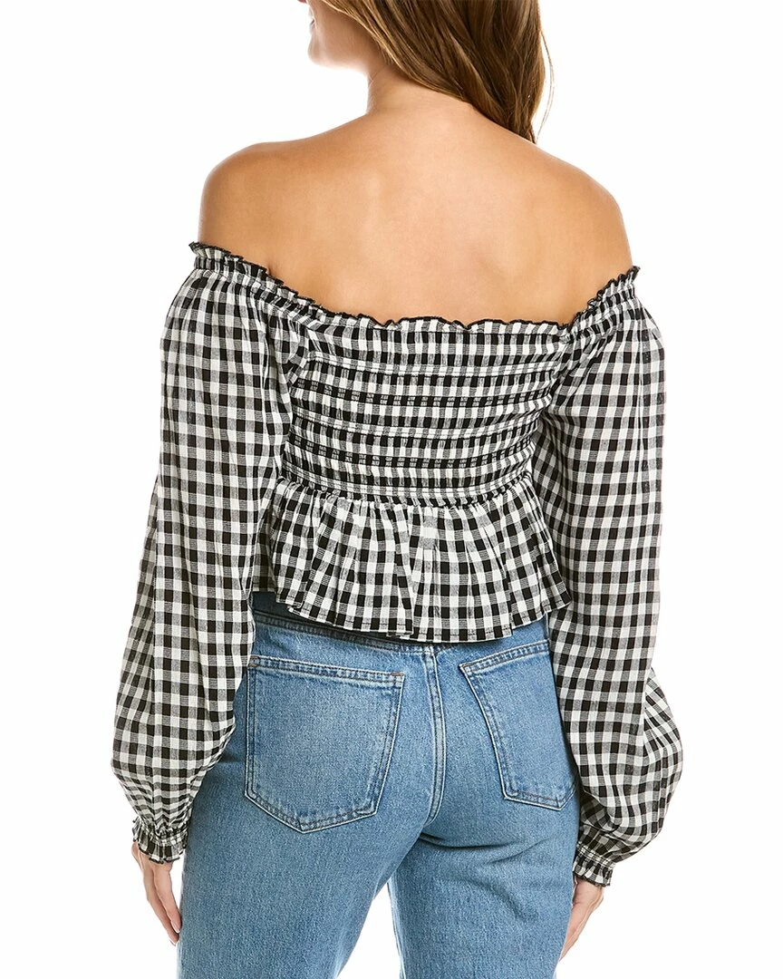 - Smocked Crop Top In Black Gingham With Balloon Sleeves And Peplum Hem