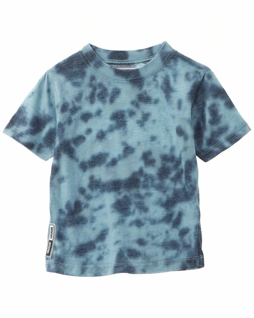 - Tie-Dye T-Shirt In Navy/Blue With Logo Accent And Ribbed Trim