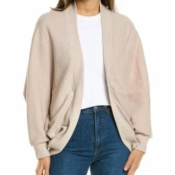 - Waffle-Knit Cardigan In Cream With Batwing Sleeves